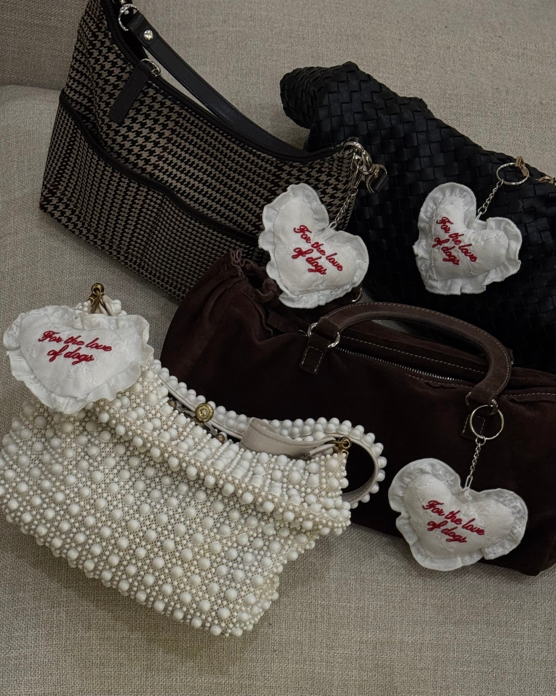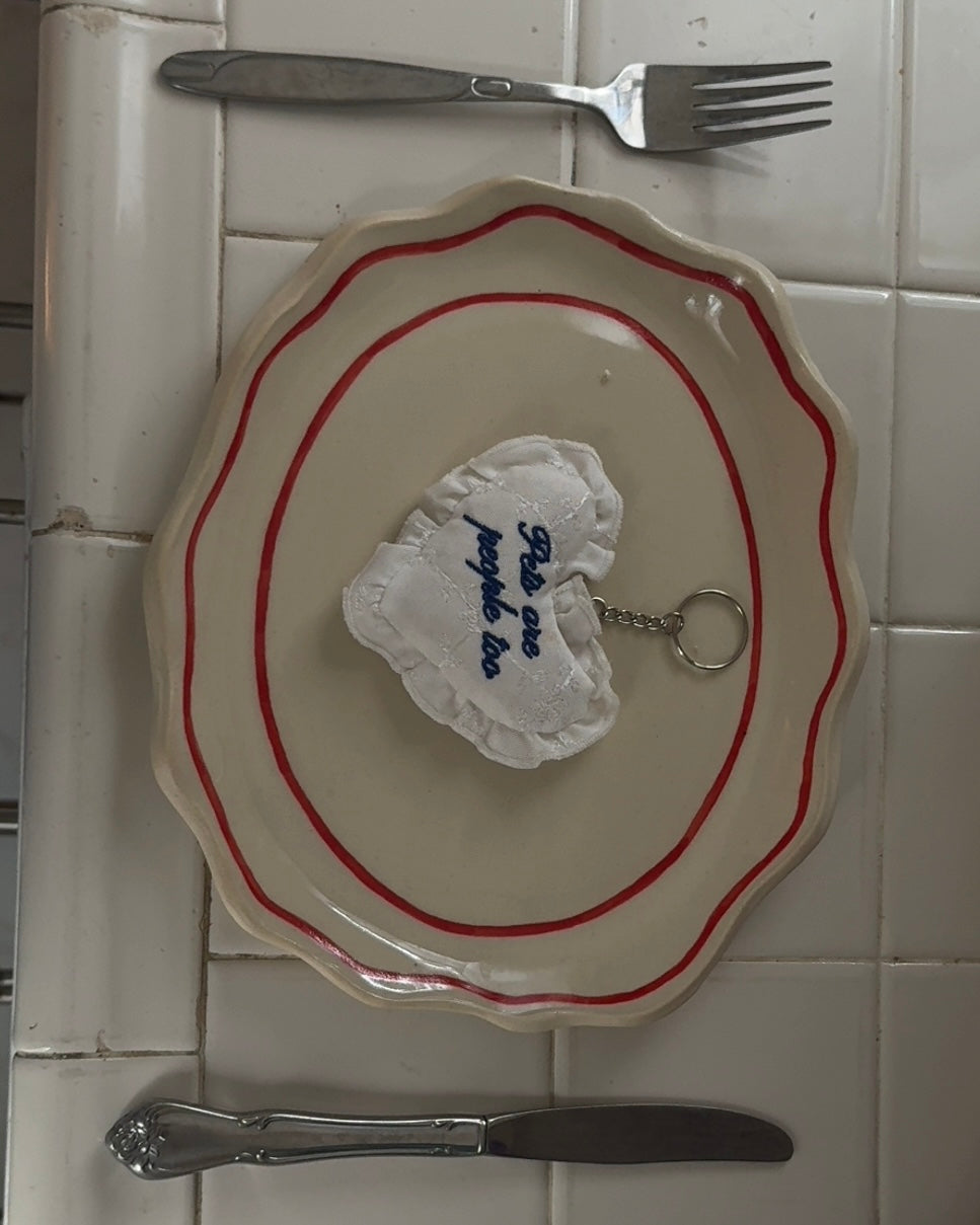Our heart pillow keychain inspired by vintage pillows. Made out of dead stock fabric sourced in LA.