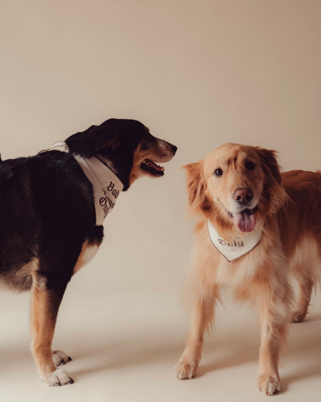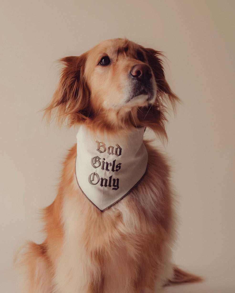 This bandana was created in honor of our dog, Indie — our first baby, our little shadow, and the original bad boy.