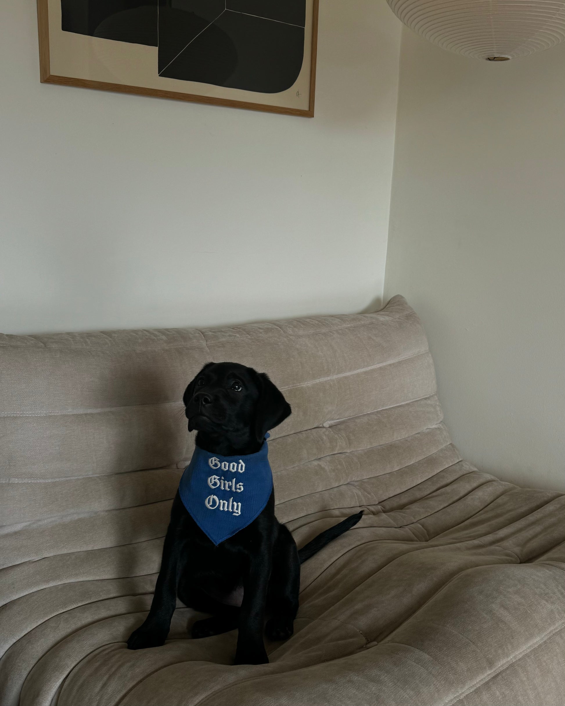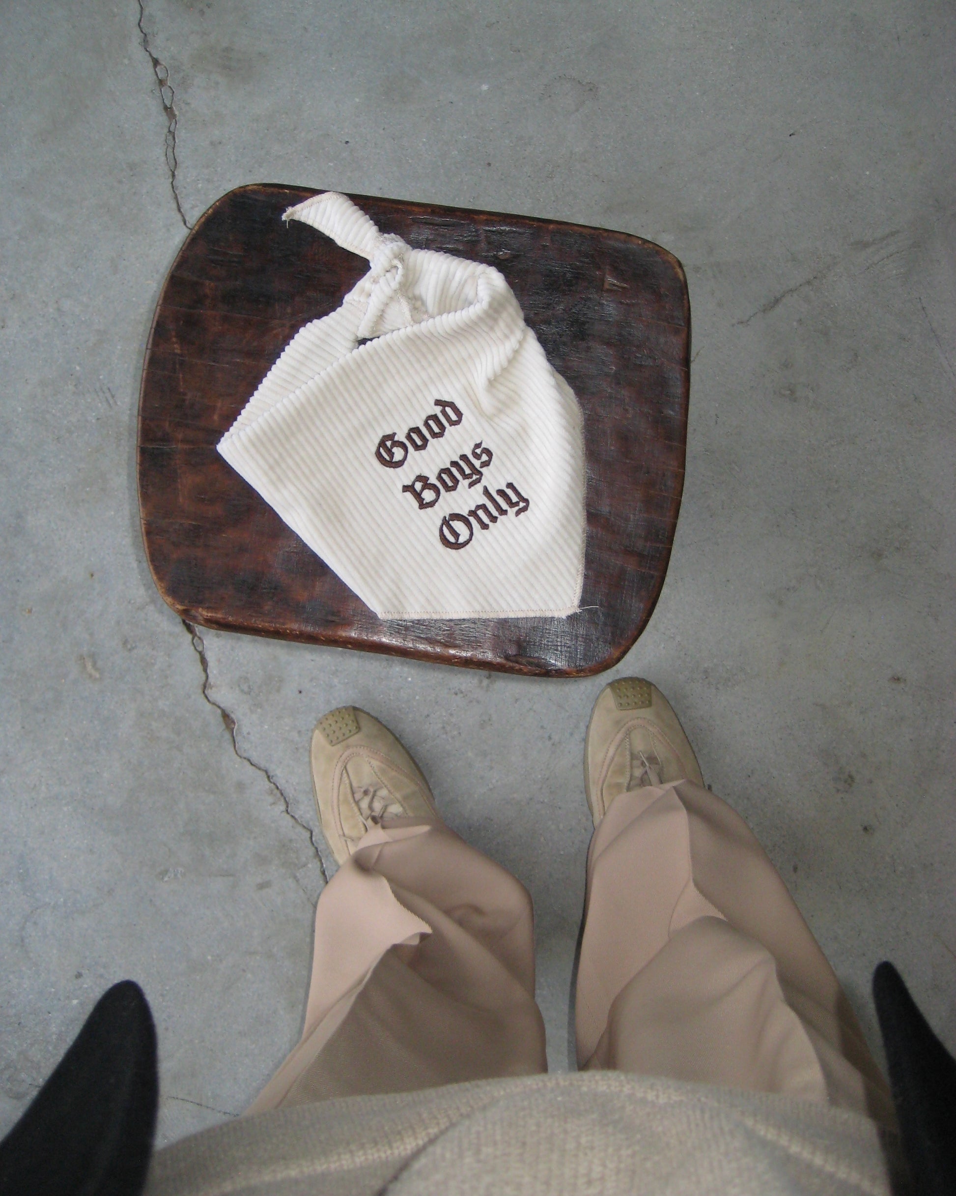 Made out of dead stock fabric sourced in LA. Embroidered with Good Boys Only or Good Girls Only.